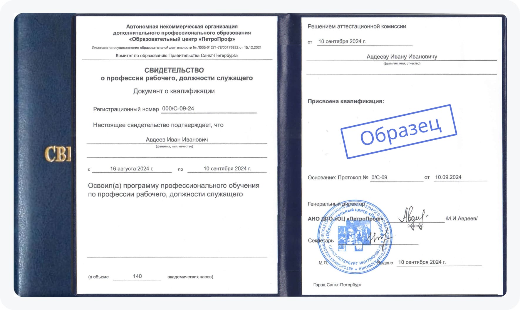Обучение рабочим специальностям в "ПетроПрофе" — это удобный и эффективный способ получить профессиональное образование с возможностью дистанционного обучения. Мы предлагаем гибкие программы, которые позволяют пройти обучение в комфортном режиме, включая подготовку к аттестации и получение всех необходимых документов: свидетельств, удостоверений и сертификатов. Учебное заведение строго соблюдает требования законодательства РФ в сфере профобразования, что подтверждается лицензией и государственным контролем. Повышение квалификации и профпереподготовка специалистов также доступны в нашем центре, что помогает поддерживать конкурентоспособность на рынке труда и строить успешную карьеру.